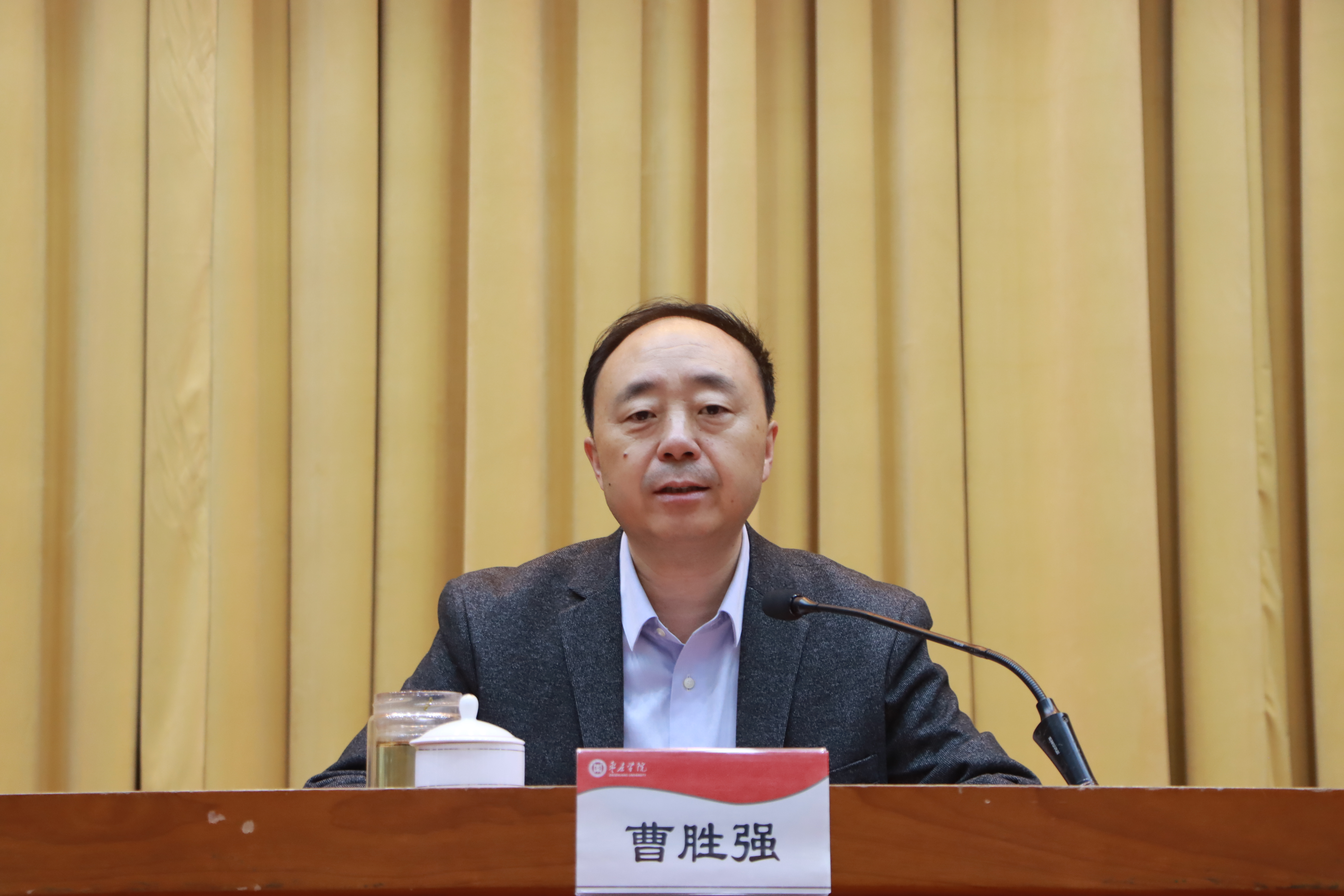 3月17日下午,我校在综合楼报告厅召开党史学习教育动员大会,部署安排我校党史学习教育工作。校党委书记曹胜强围绕深入学习贯彻习近平总书记在党史学习教育动员大会上的重要讲话精神、认真贯彻落实省委和全省教育系统动员大会精神,紧密结合我校改革发展实际做了动员讲话。校领导李文喜、曾宪明、李目海、路绪剑、丰雷、安涛、张昌林、林勇出席会议,全校副处级以上干部参加会议。会议由校长李文喜主持。