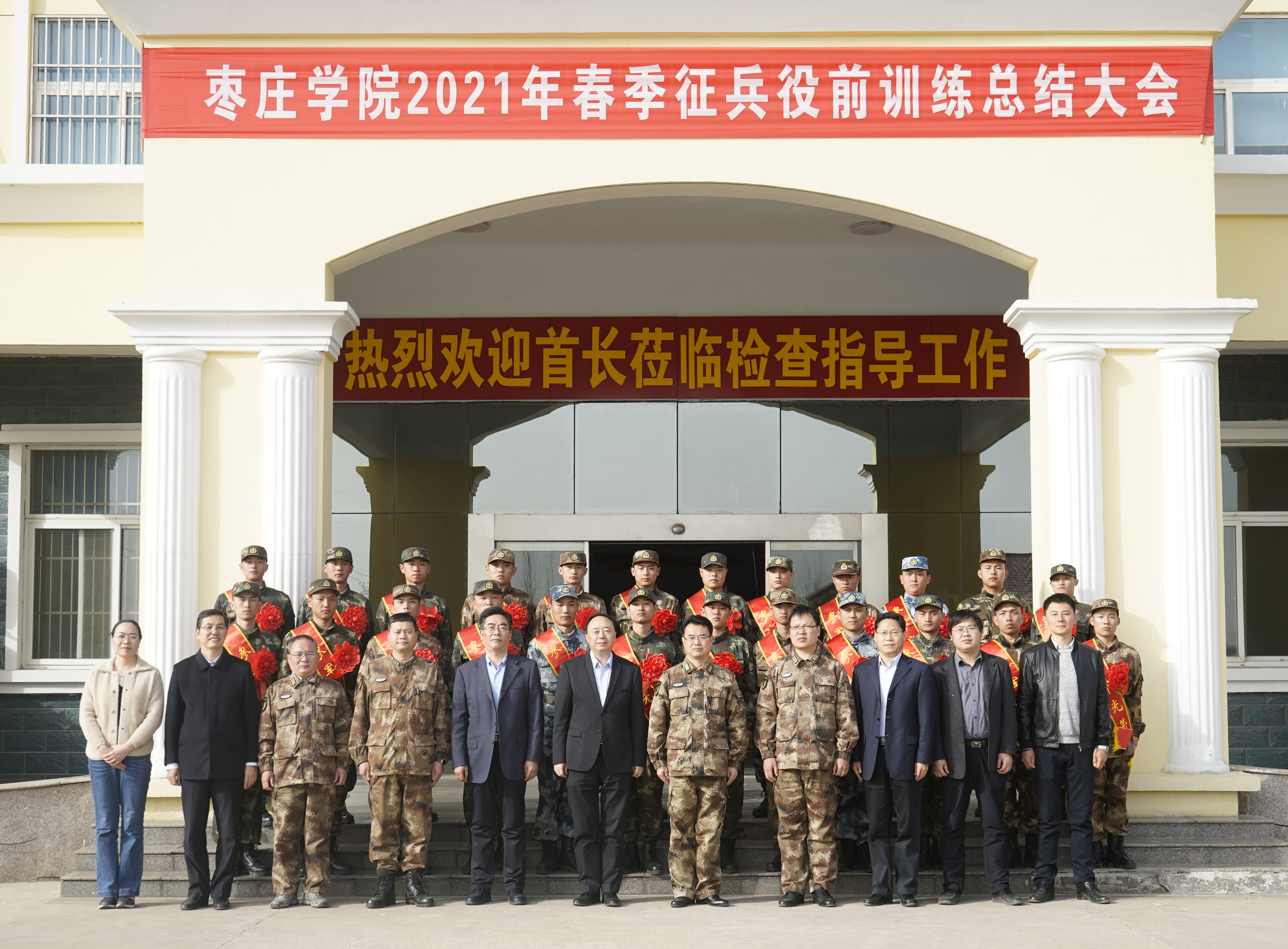 3月16日下午,304am永利集团官网2021年春季征兵役前训练总结大会在峄城区武装部召开,枣庄市军分区司令员王普照、校党委书记曹胜强出席会议并讲话,枣庄市军分区动员处,学校办公室、武装部负责同志参加了会议,会议由副校长安涛主持。