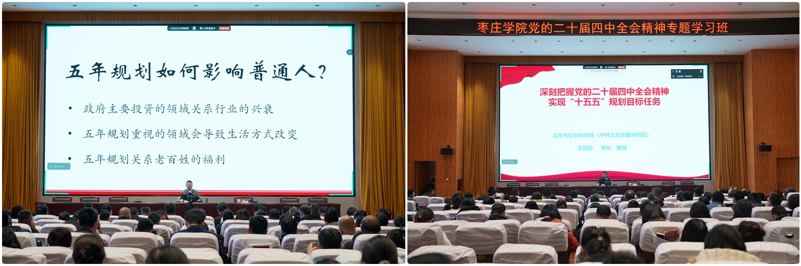 本次学习班共计3天,采取动员讲话、辅导报告、集中学习、研讨交流等方式进行。全校副处级干部、科级干部和校聘副院长参加培训。山东省委党校教授、硕士生导师栾盛磊以《夯实基础 全面发力 奋力开创中国式现代化新局面》为题,北京市社会科学院(中共北京市委讲师团)马克思主义研究所所长尤国珍教授以《深刻把握党的二十届四中全会精神 实现“十五五”规划目标任务》为题,对党的二十届四中全会精神进行了全面系统的阐释和深入浅出的解读。