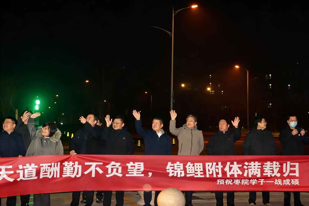 12月20日,2026年全国硕士研究生招生考试正式拉开帷幕。为保障考生顺利赴考,我校精心组织“暖心送考”服务。清晨6点30分,28辆送考专车已在市中校区和薛城校区整装待发。校党委委员、副校长褚夫敏,党委委员、宣传部部长闫昕分别前往市中校区、薛城校区为考研学子送行。
