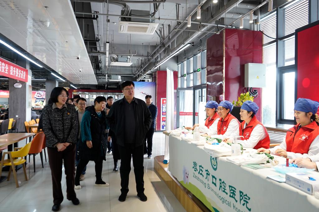 3月9日上午,我校联合枣庄市口腔医院在薛城校区莲花餐厅举办“医校共建”义诊活动。枣庄市口腔医院党委书记刘亚红、副院长王硕率领由多科室专家组成的医疗团队参加活动。校党委委员、副校长李存杰及相关职能部门负责人在活动现场与医疗团队深入交流,共同探讨深化医校合作的新路径。