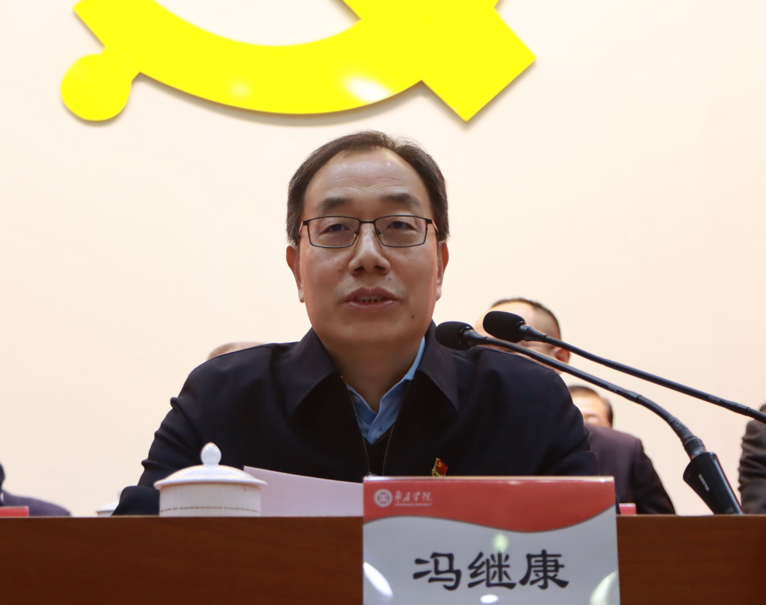 冯继康代表省委教育工委和省教育厅党组,对大会的召开表示热烈祝贺,并对学校第二次党代会以来在党的建设和各项事业上取得的成绩给予充分肯定。他指出,此次大会是在全面开启“十四五”新征程,深入推进科教融合改革,全面贯彻落实新时代教育评价改革任务关键时期召开的一次十分重要的会议。开好这次党代会,对于在新起点上认真总结过去、科学谋划未来,明确目标任务、制定改革措施,推进高质量发展必将起到十分重要的作用。希望各位代表以高度的政治责任感,强烈的历史使命感,从改革发展大局出发,认真履行好代表义务,正确行使好民主权利,统一思想、献计献策、共谋发展,圆满完成大会的各项任务。冯继康代表省委教育工委,对即将产生的新一届党委领导班子提出三点希望:一是聚焦全面从严治党新要求,着力加强党的建设,为学校事业发展提供坚强政治保障;二是聚焦立德树人根本任务,着力抓好师生思想政治教育工作,努力培养德智体美劳全面发展的社会主义建设者和接班人;三是聚焦高质量发展新要求,着力推进学校内涵发展,努力在服务经济社会发展中贡献新力量。