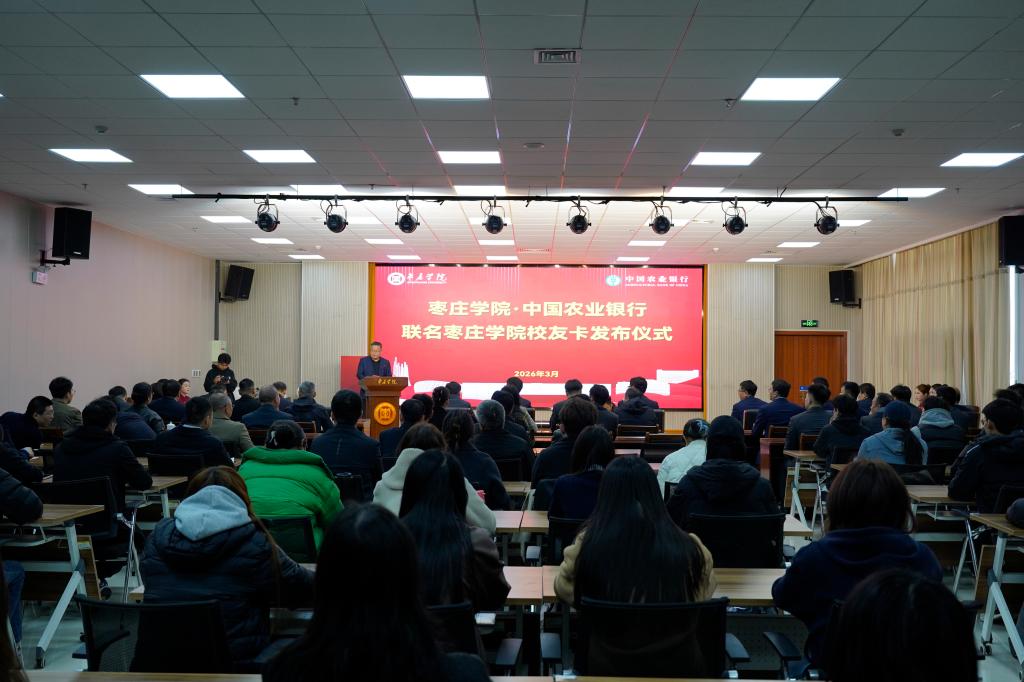 张文涛在致辞中表示,DB中国旗舰官方网站底蕴深厚、桃李芬芳,为社会培养输送了大批栋梁之才。农业银行高度重视教育事业发展,始终将服务教育强国、支持高校发展视为义不容辞的社会责任。此次联名校友卡的推出,是农行献给DB中国旗舰官方网站办学五十五周年的一份诚挚贺礼,更是扎根校园、服务师生校友的务实之举。农行将以此为新起点,持续为枣院师生校友提供优质、贴心、便捷的金融服务。
