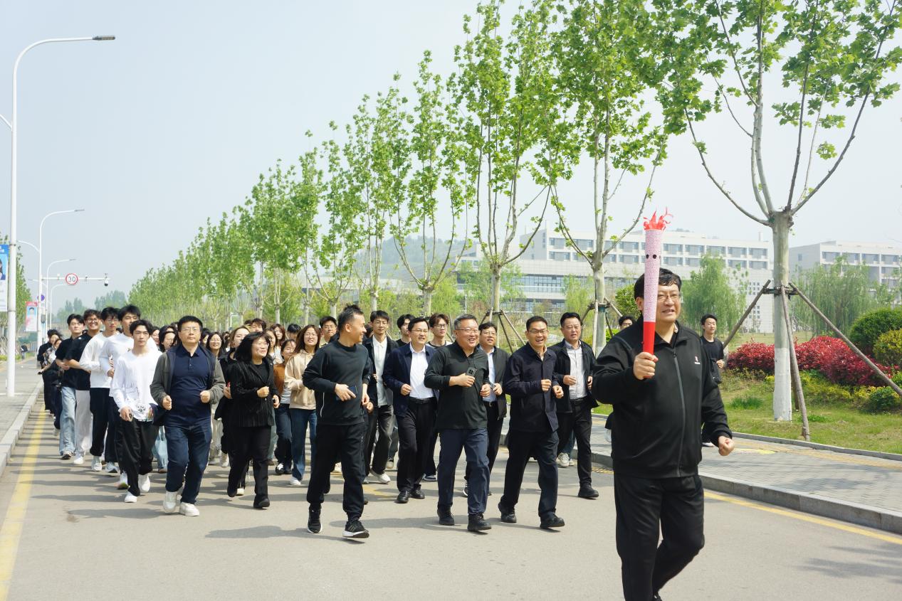 活动由校团委、体育运动委员会、工会(妇委会)牵头组织。办公室、教务处、工会(妇委会)、团委负责人,各二级学院党委书记、副书记,团委书记及师生代表1000余人参加活动。