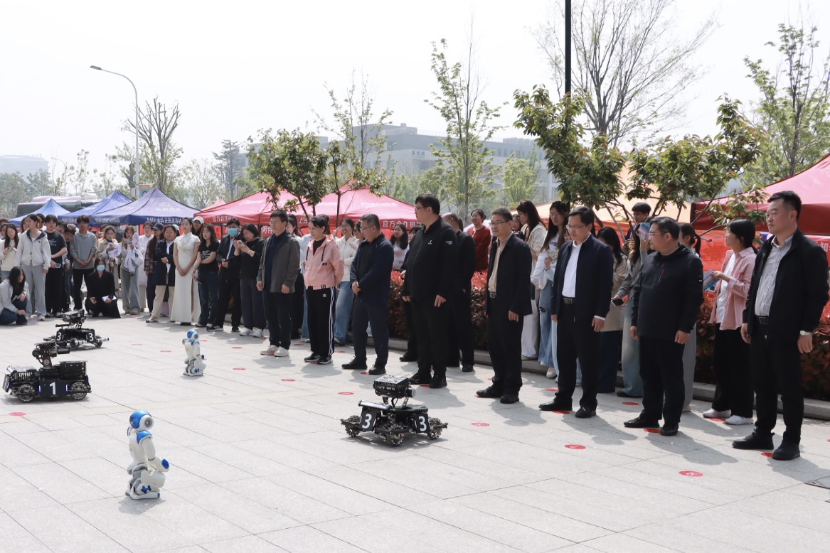开幕式上,校领导共同观看了师生自编自导的科技艺术节目展演。旅游与资源环境学院的啦啦操《风华燃旅》活力四射,尽显青春朝气;体育学院的国际标准舞《舞动青春》将体育魅力与艺术美感融为一体;信息科学与工程学院(人工智能学院)的机器人矩阵表演《芯动方阵》科技感十足,充分展现了专业实践与创新创造的成果。沿途,各学生社团同步开展了形式多样的风采展示,共同勾勒出我校科技与人文、青春与运动交融的校园文化图景。