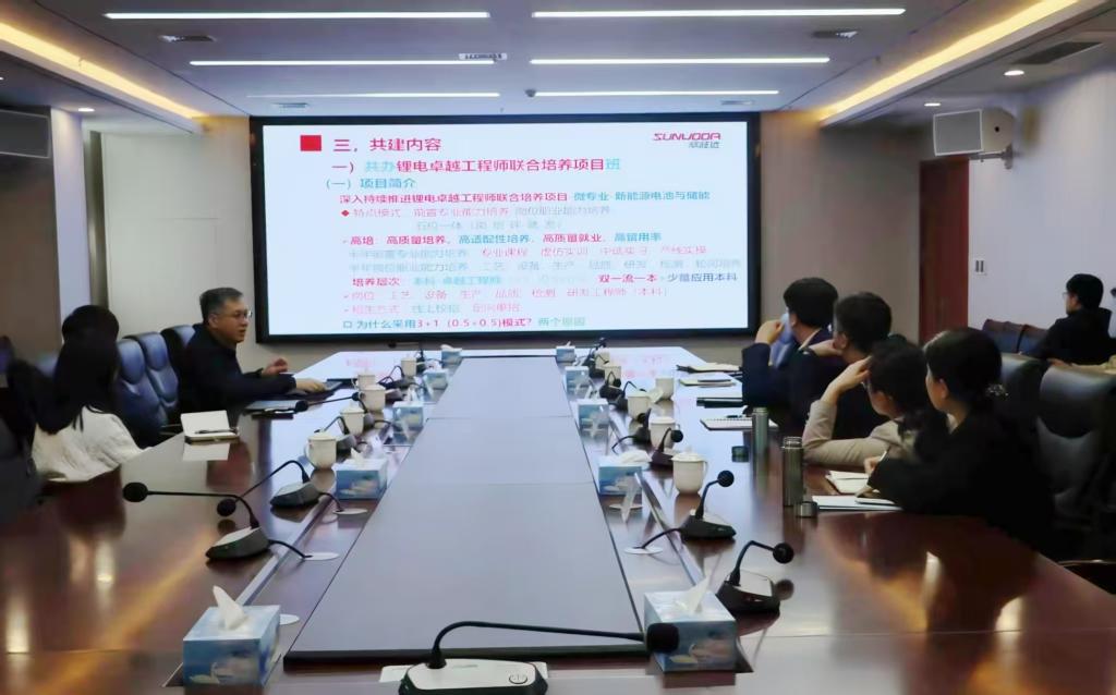 安涛就学校新能源相关专业建设及实训平台建设作了说明。双方围绕新一轮锂电卓越工程师培养方案优化、课程体系共建、双师型师资队伍建设、新能源实训中心建设、学生实习就业等具体内容进行深入研讨,达成多项共识,并明确了下一步合作方向与推进计划。