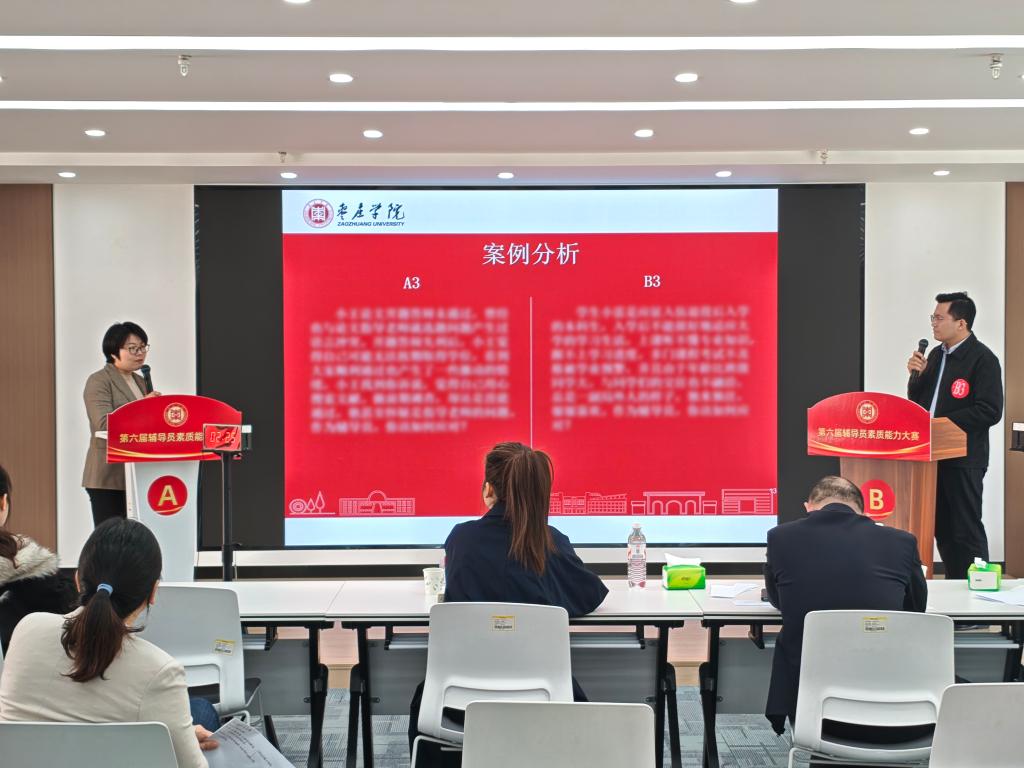 本次大赛于4月初启动,设置了基础理论知识测试、谈心谈话、案例研讨三个环节。经过层层选拔,24名优秀辅导员晋级决赛。决赛现场氛围浓厚、组织严谨。案例研讨环节采用“AB角随机配对+现场互问互答”模式,参赛选手围绕学生工作典型案例,深入剖析问题根源、研讨应对策略、总结工作规律,充分展现出扎实的理论功底、敏锐的问题研判能力与高效的应急处置水平。谈心谈话环节以情景模拟为载体,聚焦学业困惑、人际冲突、职业迷茫、心理危机等学生高频场景,选手们开展“一对一”精准沟通,以专业素养与育人温度传递思想引领力量。