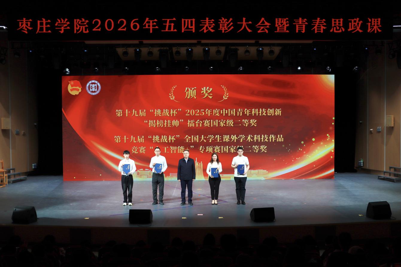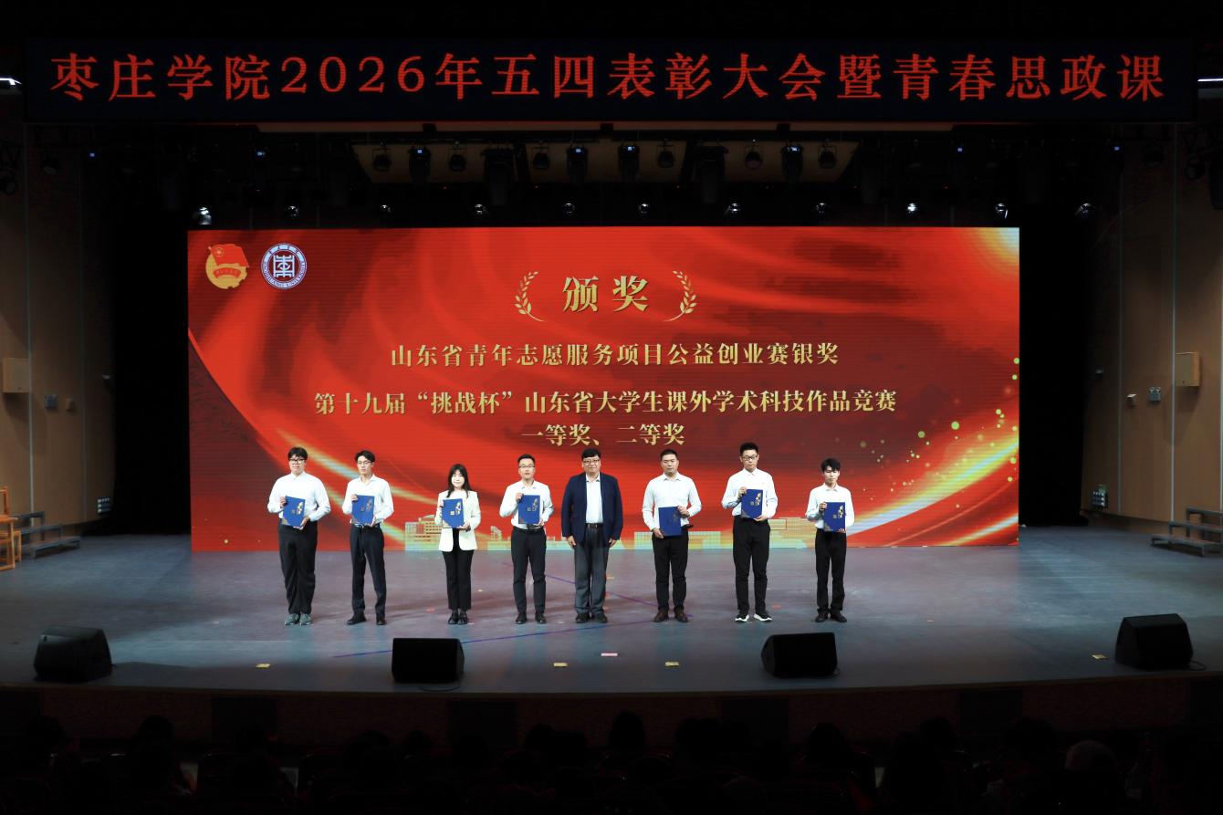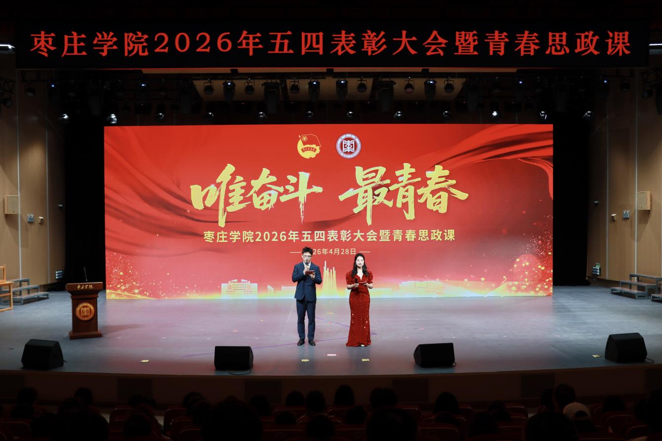 4月28日,我校在薛城校区青年音乐厅举办2026年五四表彰大会暨“唯奋斗 最青春”青春思政课。校领导高峰、丛海林、丰雷、安涛、武尚民、褚夫敏、林勇、袁俊现出席大会,与青年师生代表齐聚一堂,弘扬五四精神,共话青春担当。