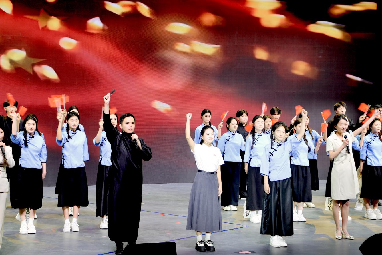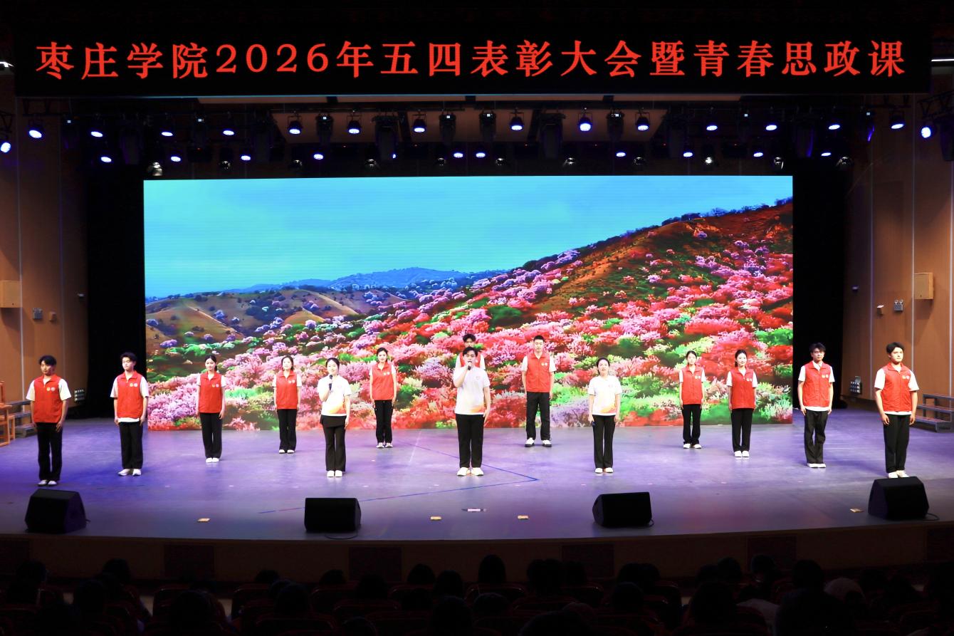 活动以“星火燎原 青春绽放”“雄关漫道 青春有为”“奋勇争先 青春担当”“强国有我 青春向党”四大篇章为主线,将表彰先进、主题微团课、文艺展演深度融合,把党的创新理论主课堂搬上舞台,让艺术与红色教育“零距离”走进青年,打造了一堂有深度、有温度、有力度的沉浸式“大思政课”,为传统思政教育注入了鲜明的枣院特色与青春气息。情景剧《五四·1919》《启航·1921》再现峥嵘岁月,带领师生感悟革命先辈矢志不渝的信仰力量;朗诵《青春中国·青春赞歌》以铿锵之声礼赞盛世中华;歌曲《愿你抬头有光》《篇章》唱响新时代青年不负韶华、逐梦前行的壮志豪情;歌伴舞《有我》以青春之姿宣誓“强国有我”的时代担当,将现场氛围推向高潮。