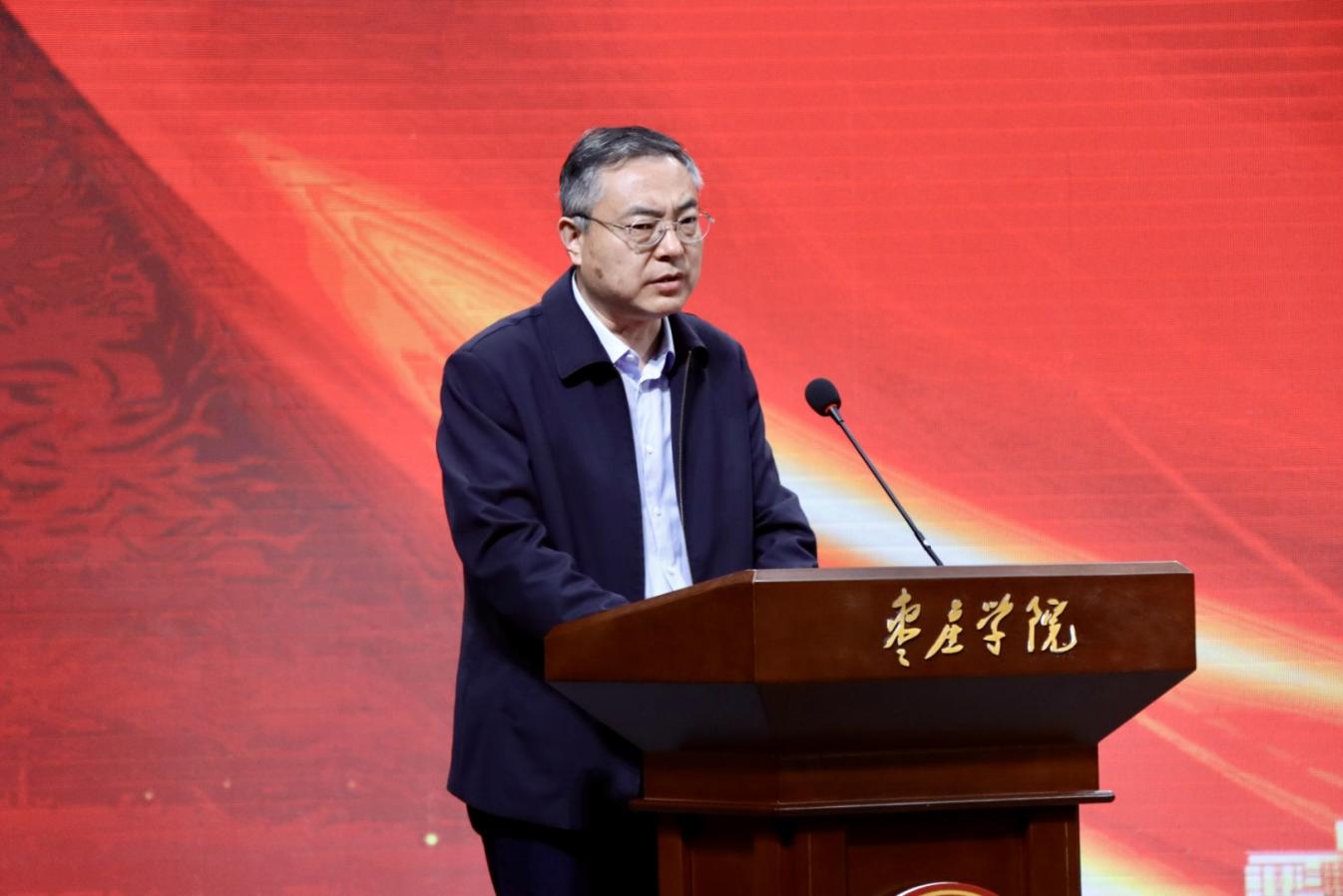 校党委书记高峰在致辞中充分肯定了学校共青团在过去一年取得的成效,并向受到表彰的集体和个人表示祝贺,向全校青年致以节日问候。结合五四运动107周年的时代内涵与“十五五”开局之年的时代背景,高峰对全校青年提出三点期望:一要筑牢信仰之基,在深学细悟中坚定理想信念;要自觉加强理论修养、锤炼品德修为,在固本培元、铸魂修身中坚定人生航向。二要勤学善思笃行,在求知创新中夯实青春根基;要紧扣枣庄“强工兴产、转型发展”战略部署,深耕专业学习,主动对接地方发展需求,在知行合一中积蓄成长力量。三要矢志拼搏奋斗,在实干奉献中彰显青春价值;要以先进典型为榜样,积极投身基层实践,在攻坚克难、无私奉献中实现青春价值。