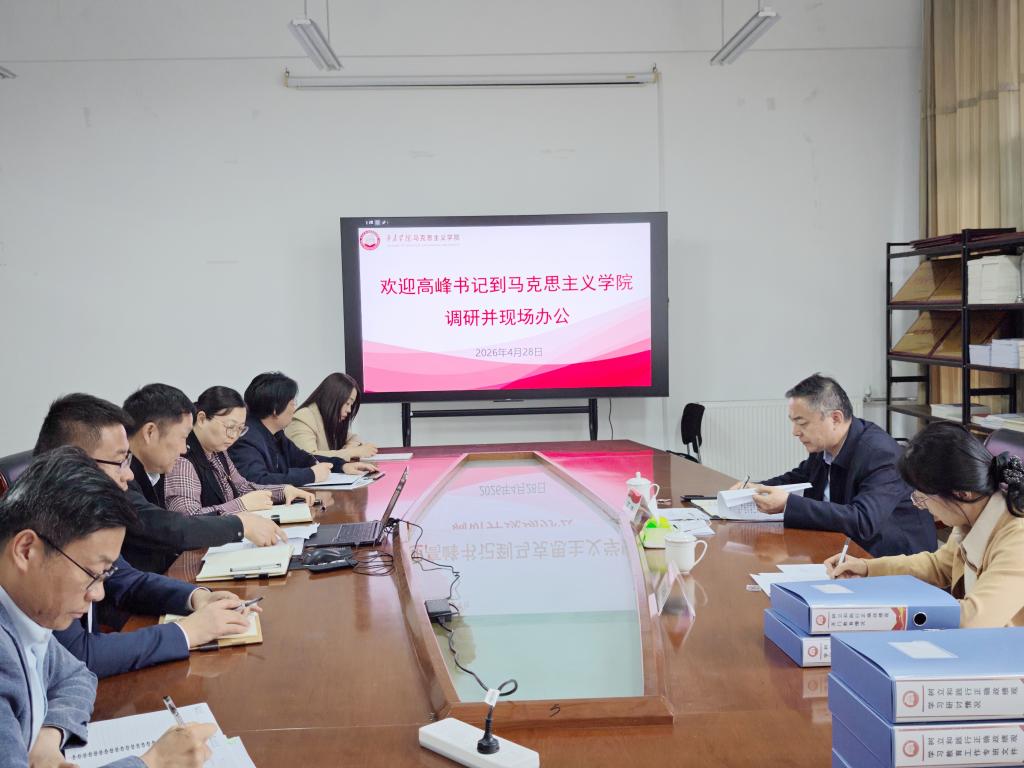 4月28日,校党委书记高峰深入马克思主义学院,就树立和践行正确政绩观学习教育开展情况进行调研督导,并召开现场办公会,指导学院加强内涵建设。