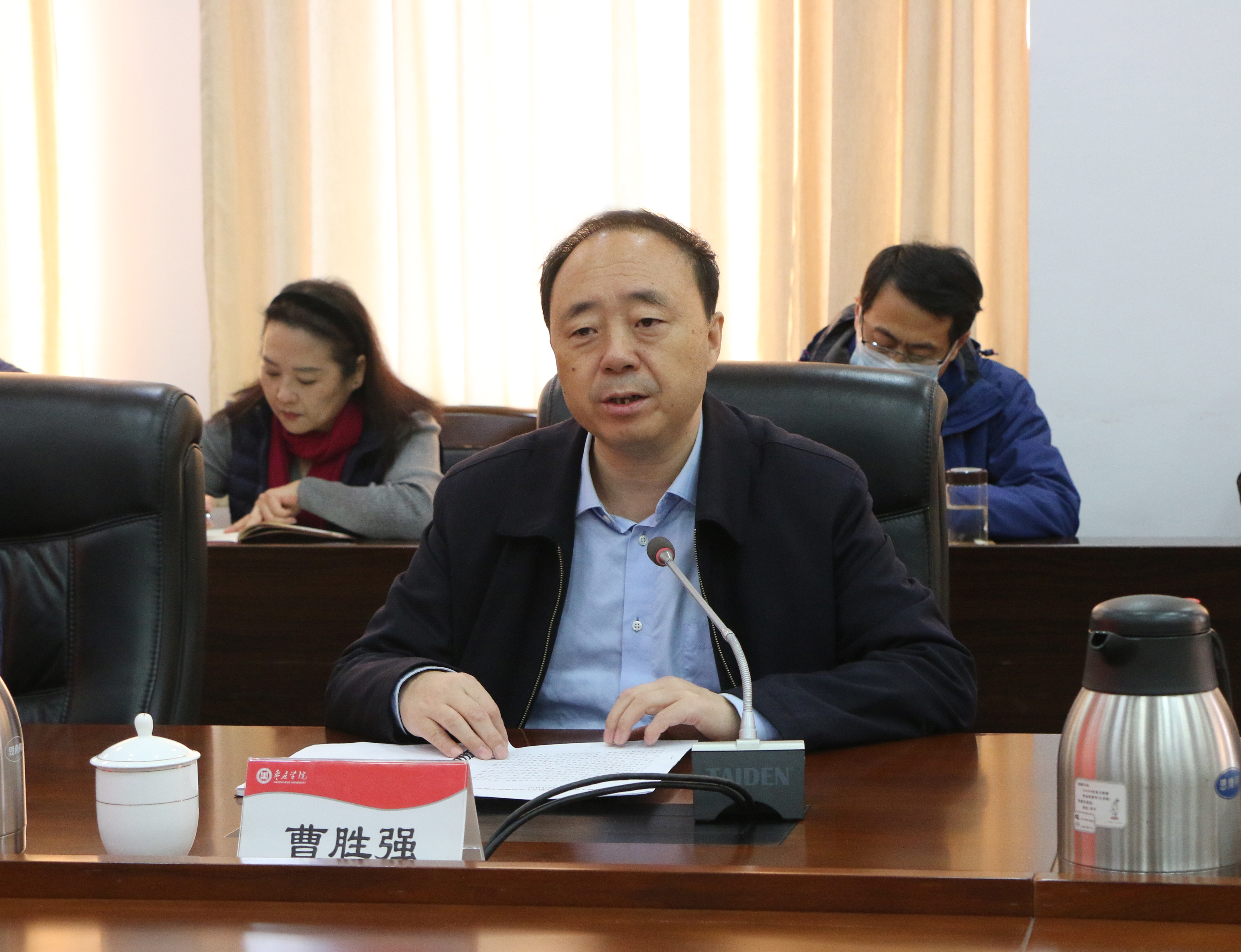 为全面深入学习贯彻党的十九届五中全会精神,根据中央和省委部署以及省委教育工委工作要求,12月21日上午,全校副处级干部党的十九届五中全会精神专题学习班开班式在综合楼三楼会议室举行,校党委书记曹胜强出席开班式并作动员讲话。党委副书记曾宪明,党委委员、组织部部长孙正出席,我校全体副处级干部参加开班式。