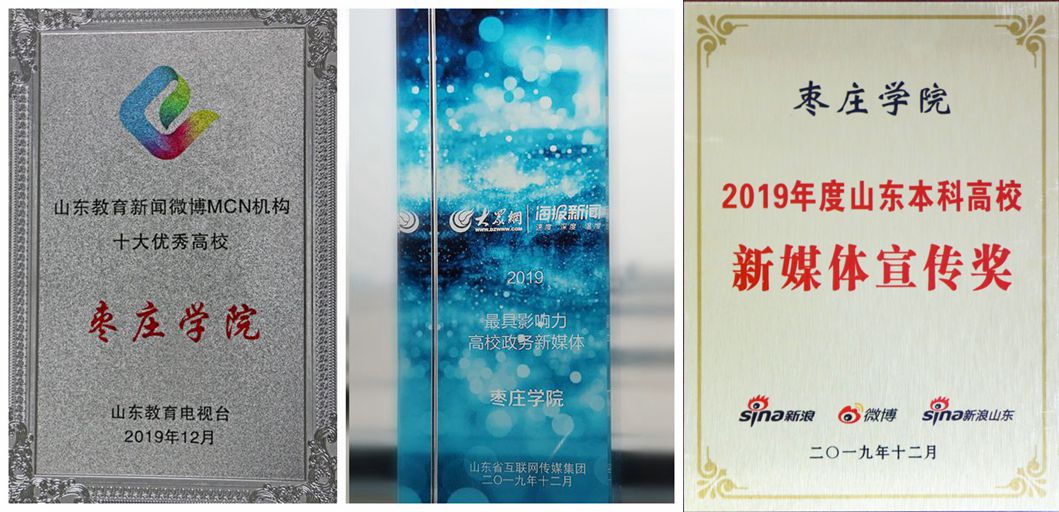 近年来,学校主动适应新媒体传播发展形势,不断探索高校媒体融合发展路径,努力推进报纸、视频、微博、微信等宣传媒体的发展与融合,在借助融媒传播、讲好大学故事方面进行积极探索,打造了全方位、多层次、立体化、广覆盖的宣传矩阵,为特色校园文化建设贡献了传媒力量,进一步提升了学校的社会影响力和美誉度。2019年,学校荣获“山东教育新闻微博MCN机构十大优秀高校”“山东最具影响力高校政务新媒体”“山东本科高校新媒体宣传奖”称号;2020年,我校融媒体阵矩发声响亮,围绕学校取得的成绩、亮点,讲好枣院故事,传递枣院声音,得到了社会各界、广大师生和校友的高度评价。近期荣获的“2020年度新媒体品质运营奖”“2020年度融媒传播最具公信力高校”称号均体现了省级主流媒体对我校一年来校园融媒体建设的充分肯定。