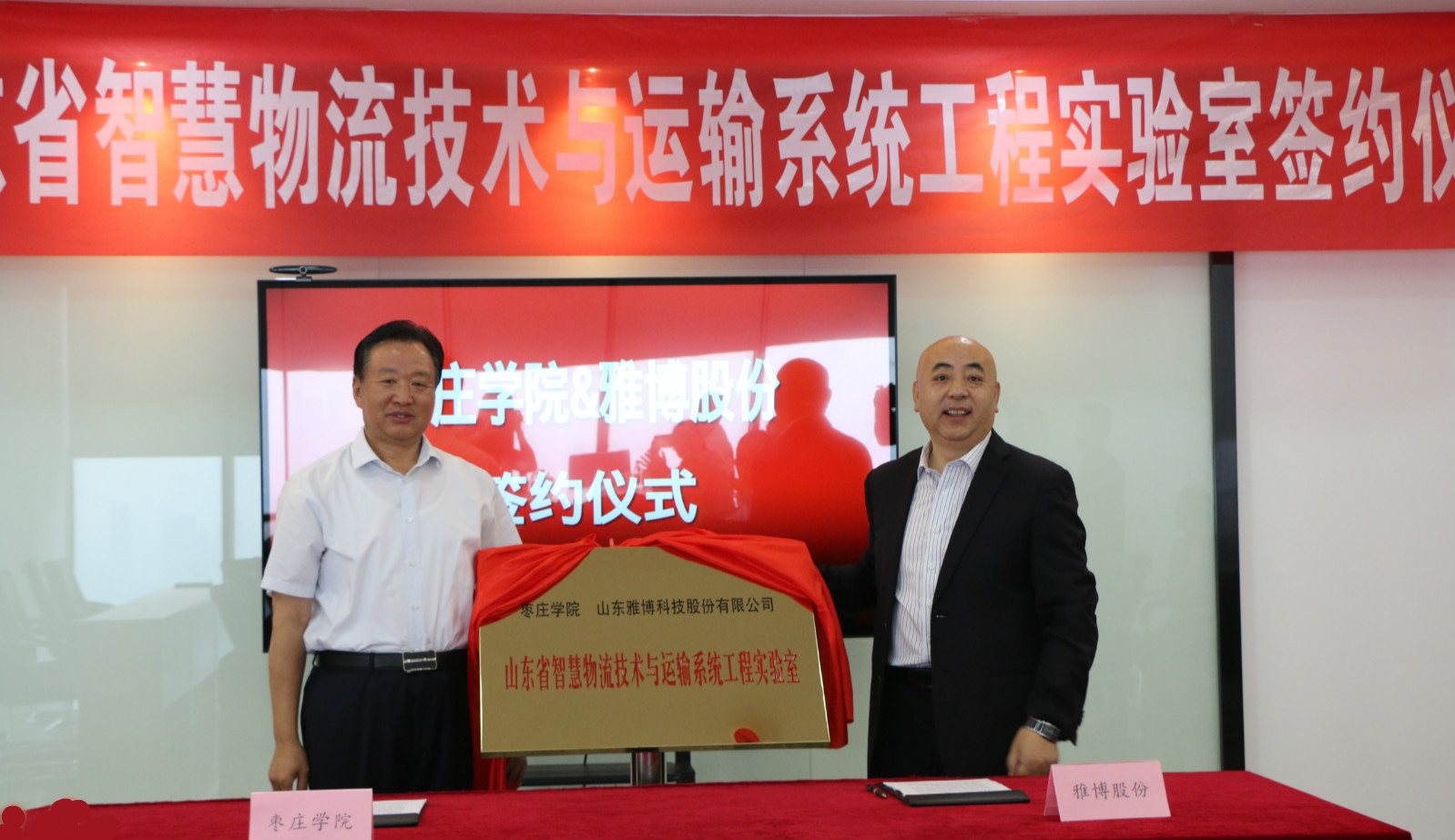 李东与唐继勇共同为“304am永利(中国)集团有限公司-Officialwebsite 山东雅博科技股份有限公司山东省智慧物流技术与运输系统工程实验室”揭牌。