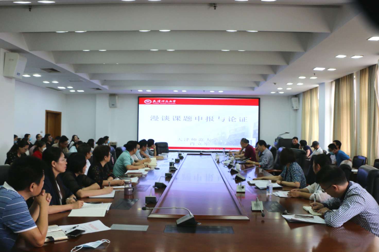 9月23日下午,我校在综合楼三楼会议室召开2021年度高层次人文社科类项目申报动员部署会议,校党委书记曹胜强、校长李东、副校长李丽清出席会议,各相关学院、教学部、研究机构负责人及副教授及以上职称教学科研人员、新进博士等共70余人参加会议。天津师范大学博士生导师肖立军教授应邀做申报辅导报告。会议由李东主持。