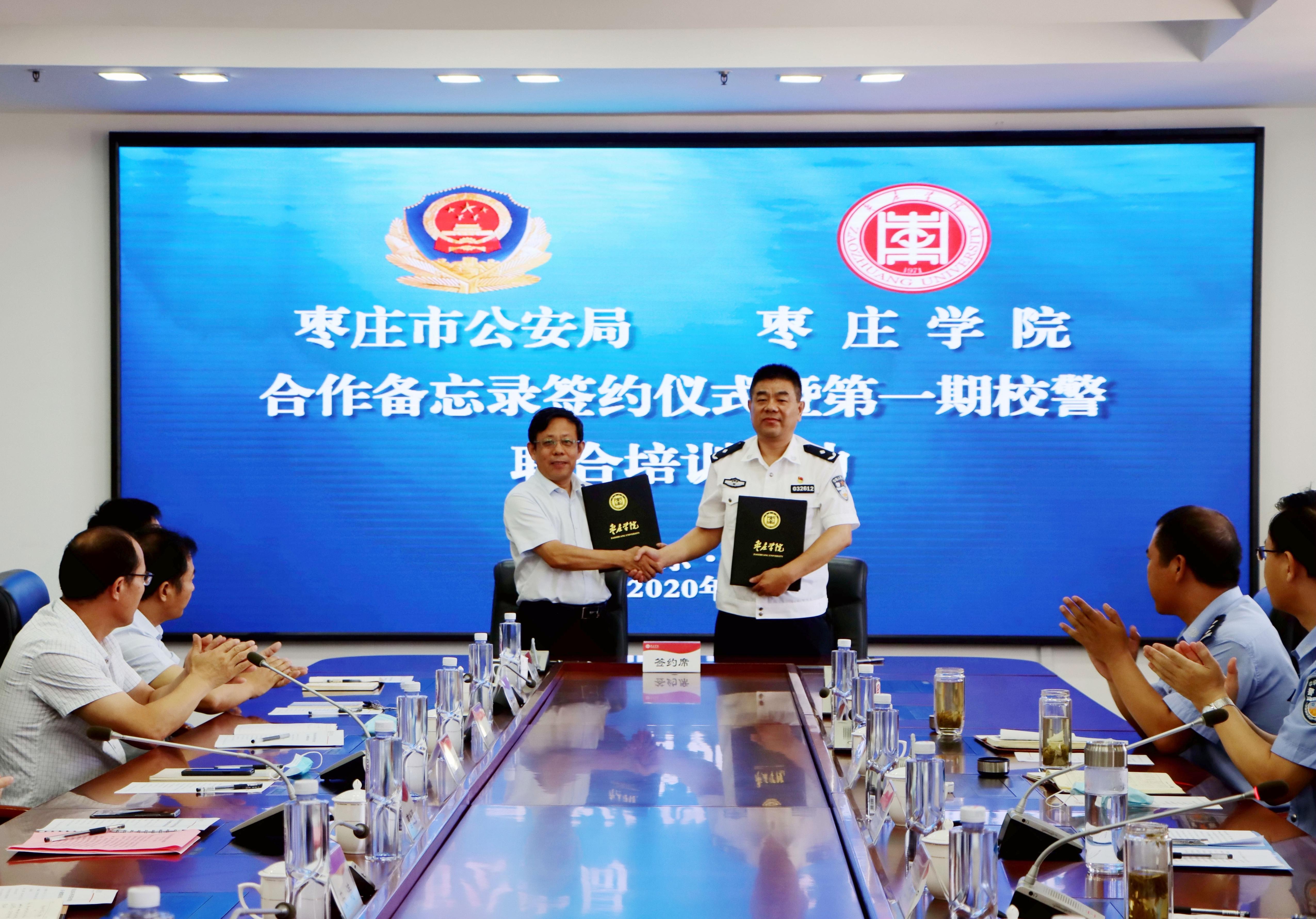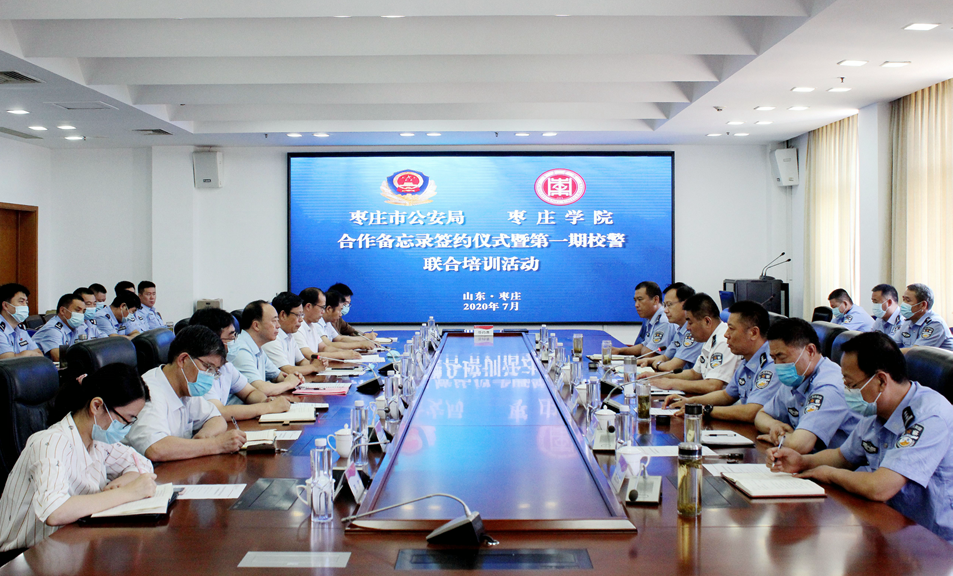 7月24日上午,枣庄市公安局与304am永利集团官网合作备忘录签约仪式暨第一期校警联合培训活动在我校综合楼三楼会议室举行,校党委书记曹胜强、副校长明清河,枣庄市公安局党委委员、副局长田传海出席活动,我校教务处、保卫处负责人,食品科学与制药工程学院院长、副院长及部分专任教师,食药环侦支队、森警支队支队长及支队全体同志,各分(市)局食药环侦大队负责同志,食药环侦及森警大队业务骨干参加活动。会议由食药环侦支队支队长张继军主持。