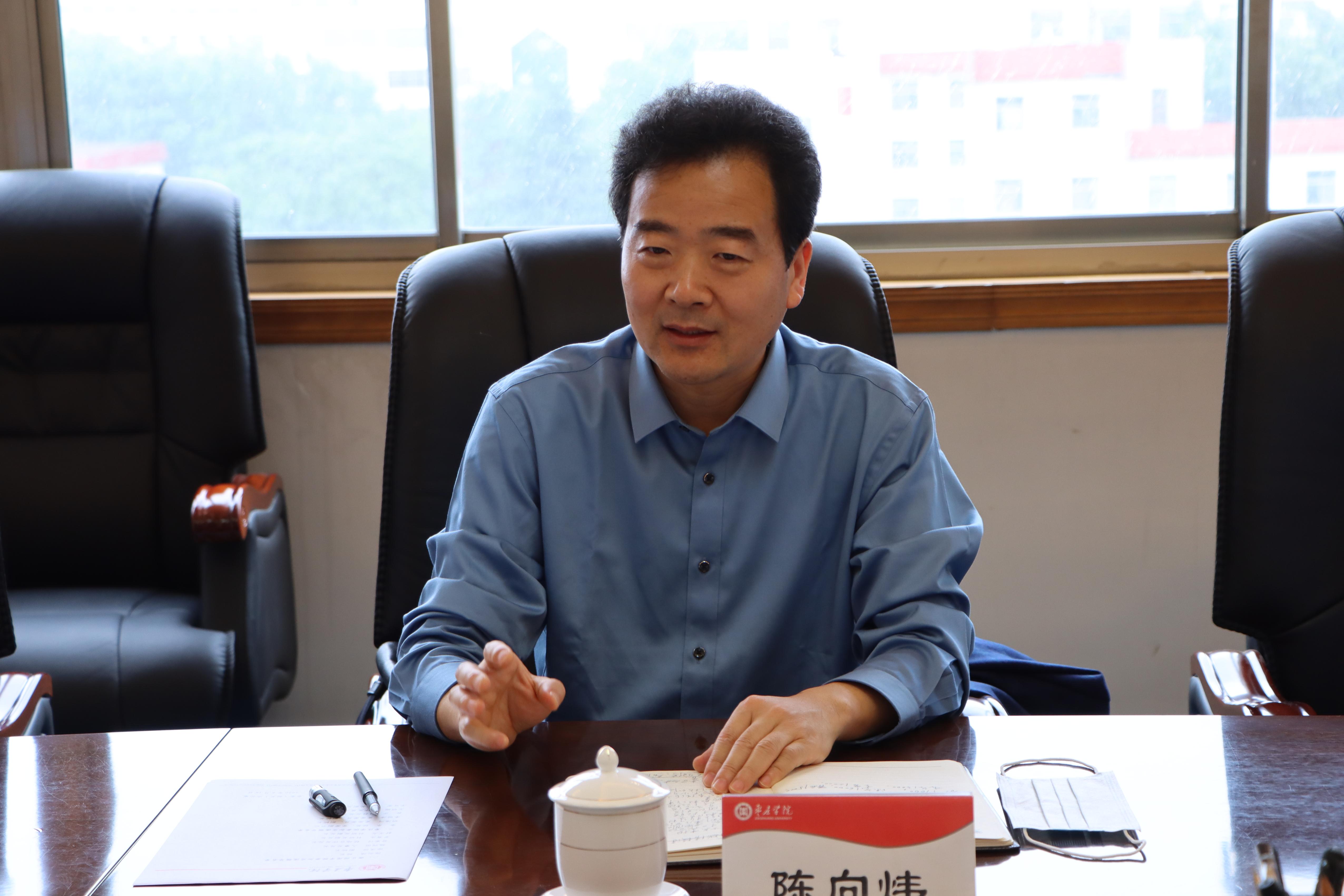 6月17日上午,商丘师范学院校长陈向炜等一行7人来校考察,就人事管理、科研管理和校地合作等方面工作与我校进行交流探讨,校党委书记曹胜强,校长李东,副校长明清河、李丽清在综合楼八楼接待室会见陈向炜一行。