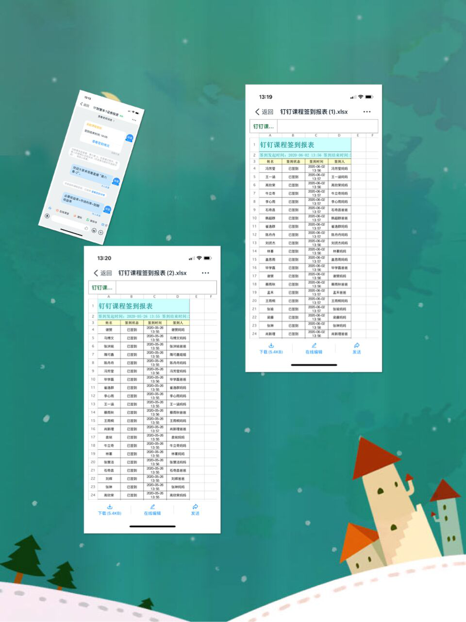 (2)在每一节课程之前,都会利用钉钉平台的在线课堂进行签到,每次给学生预留10分钟的签到时间,并在5分钟后,对没有签到的学生进行短信提醒,确保每位同学按时上课。