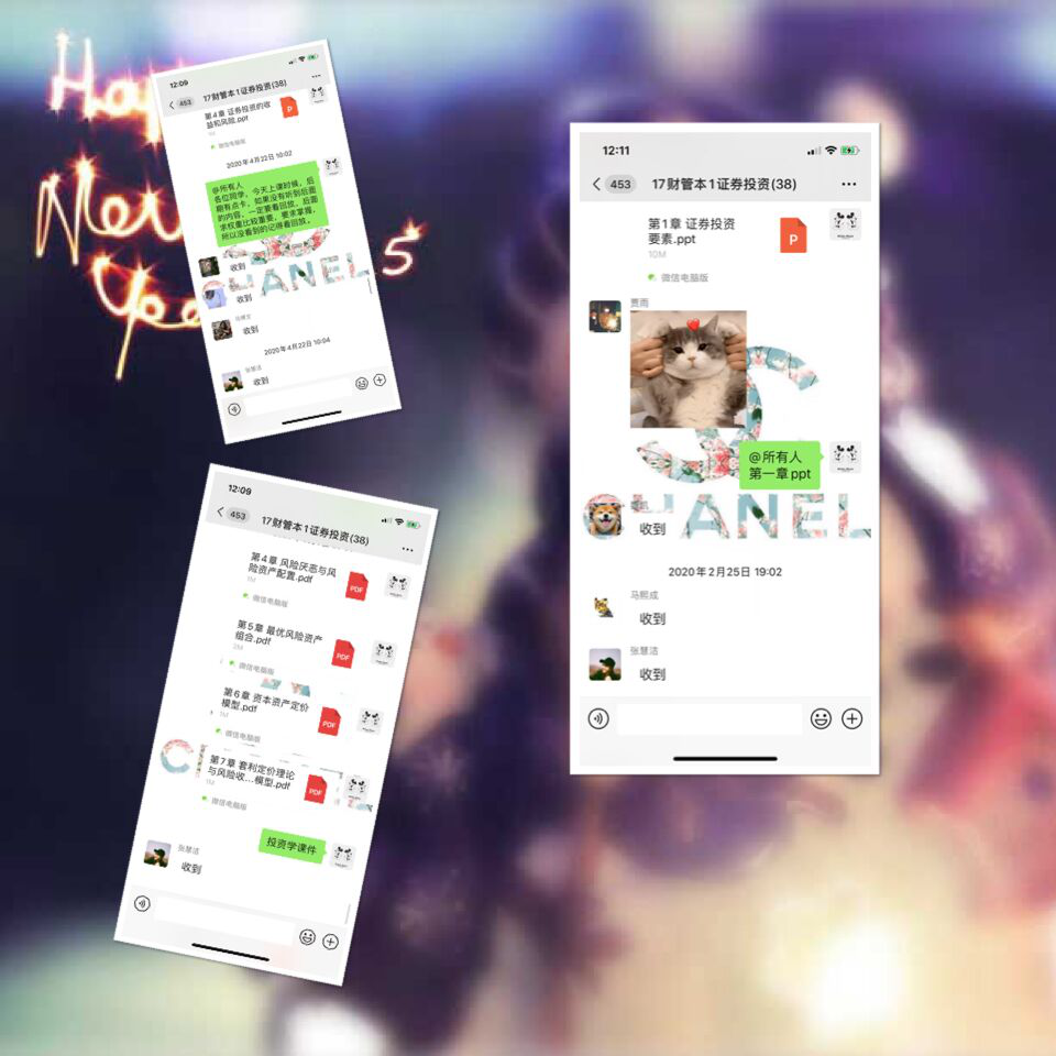 (1)在每一个新的章节内容上课之前,刘晓蕾老师先通过微信群将本章的PPT进行发放,然后将重点内容在课件中用不同颜色的字体标示出来,方便同学们课前预习。
