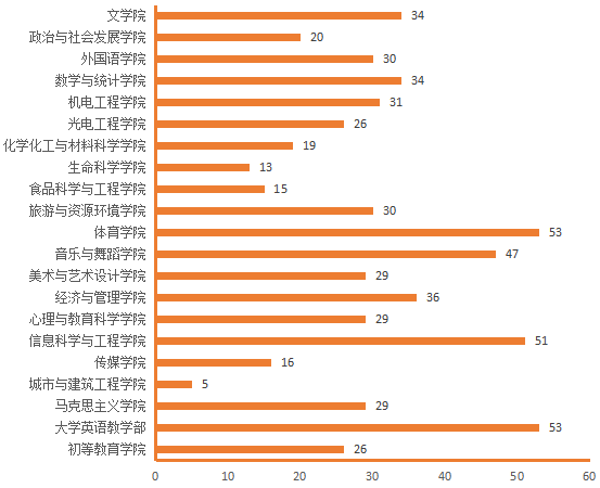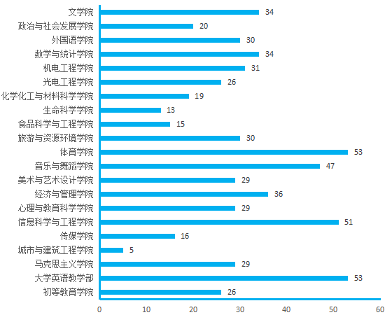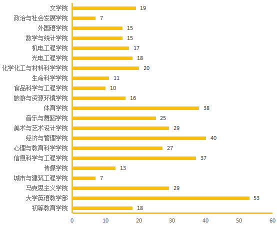 图4.各院(部)5月19日线上授课教师数(人次)分布图