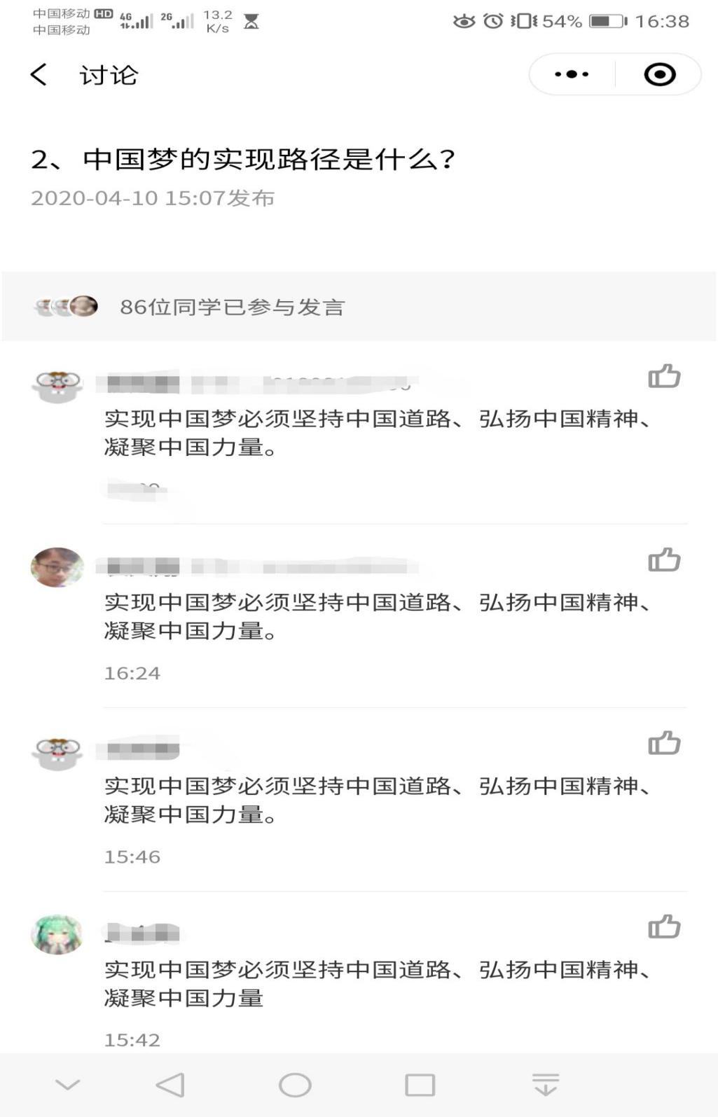教学设计是线上教学的重要组成部分,是教学顺利开展的保障。在线上教学中,老师是整个教学过程的主导者,学生是授课对象,也是教学的主体。如何让师生的教学过程有机统一起来是要解决的一个问题,王老师最终选择的是使用慕课堂小程序实现师生教学的有效衔接。课前会在慕课堂中完成备课,上课开始会在慕课堂中开启签到,发布讨论题、练习题和问卷,根据学生们的答题状况再进行有针对性的教学。在教学过程中要讲好中国故事,实现主导性和主体性的统一,坚持显性教育和隐性教育相统一。