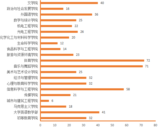 图4.各院(部)5月14日线上授课教师数(人次)分布图