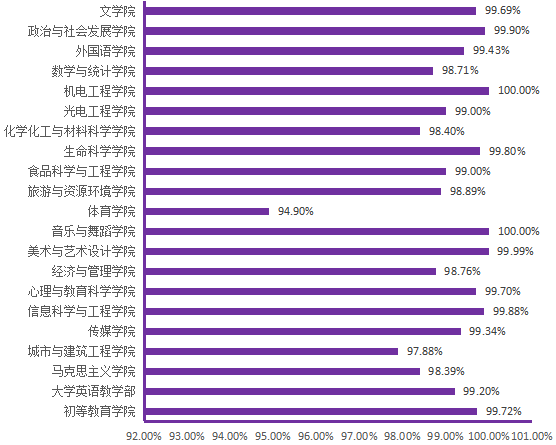 图6. 各院(部)5月14日线上学生上课率分布图