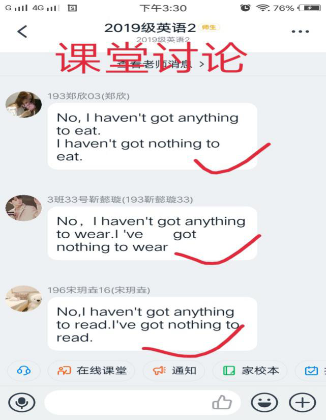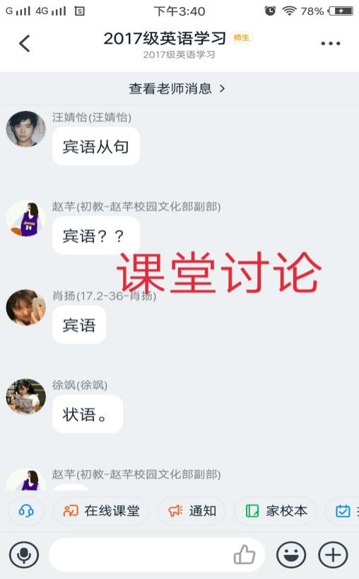 由于网络延迟的原因,线上的课堂互动环节与线下的面对面授课相比会占用更多的时间,这是必须把握的。学生参与课堂互动的积极性很高,客观题学生可以直接在在互动区输入答案,主观题学生可以拍照上传答案,也可连麦语音回答。对于学生的回答,及时给予鼓励和表扬,以保持学生的积极性。