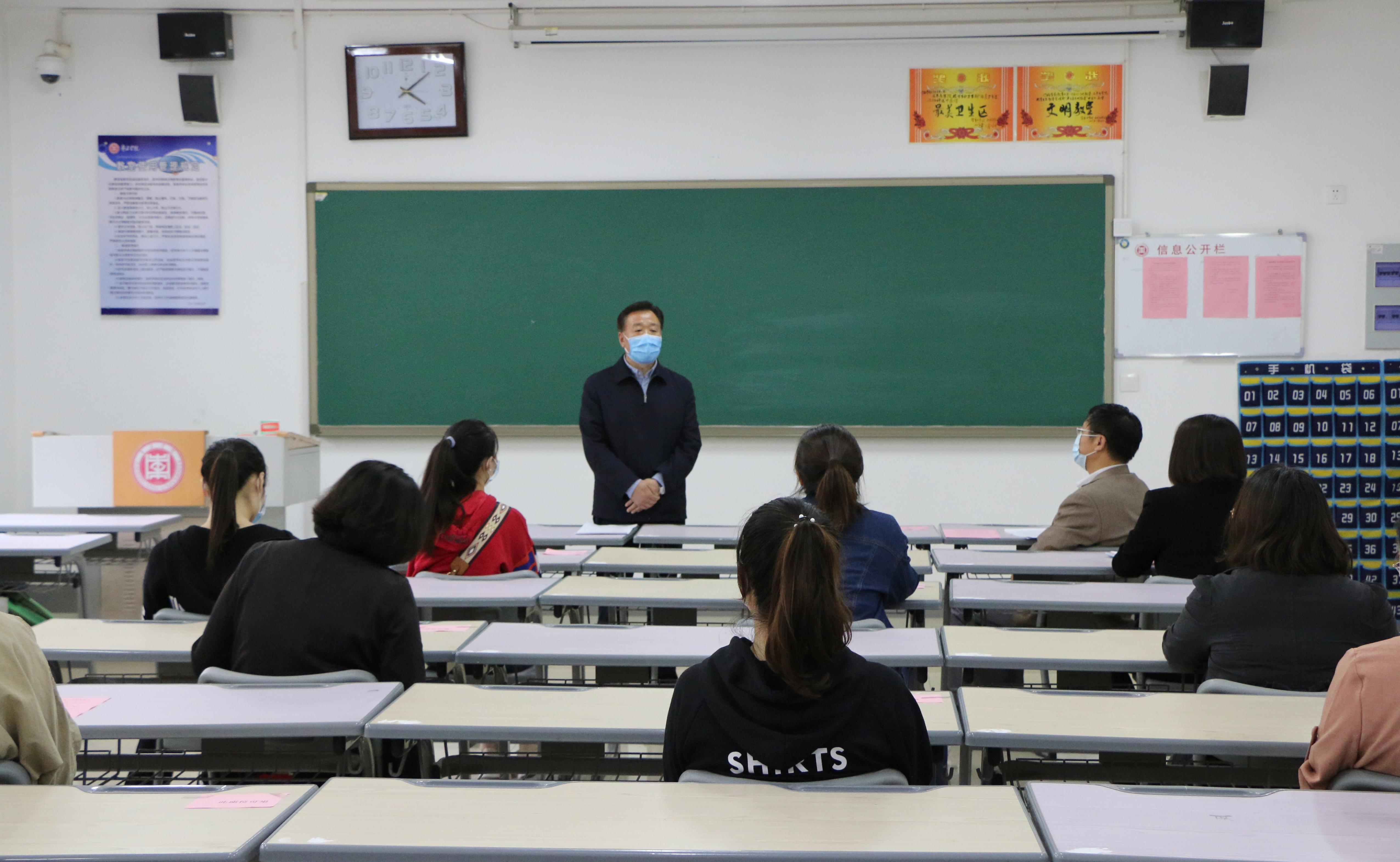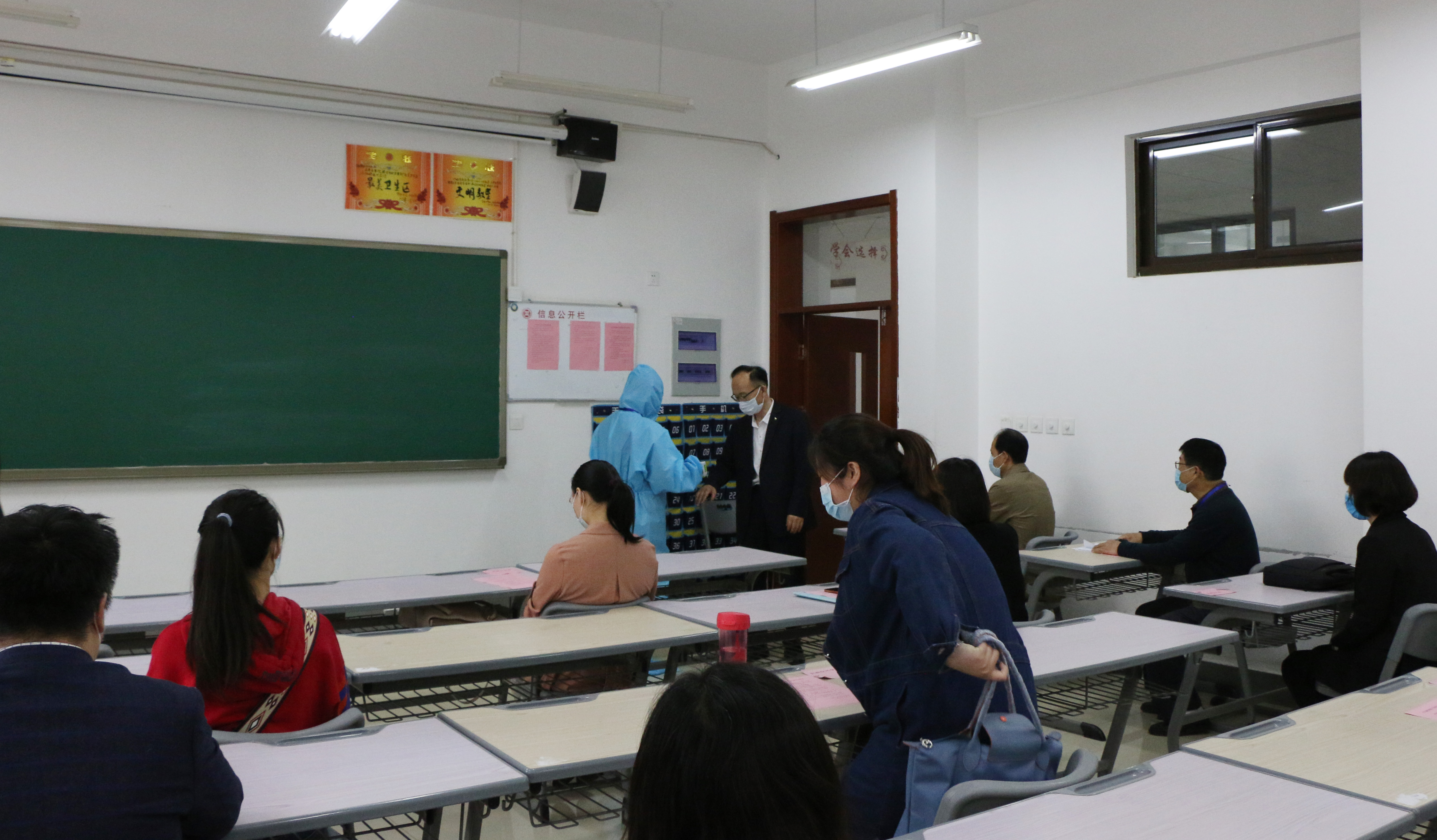 演练分为教室和宿舍两个场景。学院分别在教室和宿舍设置了等待区域、醒目标识和临时留观室,准备了消杀物品、防护用品和检测物品。由教职工扮演的“学生”在教室外间隔两米有序测体温进入教室,并在指定位置就坐后,演练启动仪式正式开始。仪式上,学院党总支书记赵荣军对演练工作及流程进一步进行了安排部署,启动仪式由院长傅金兰主持。