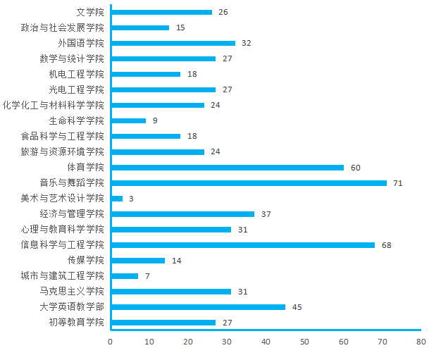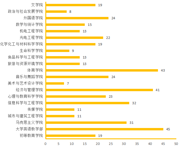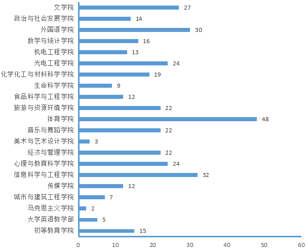 图4.各院(部)4月27日线上授课教师数(人次)分布图