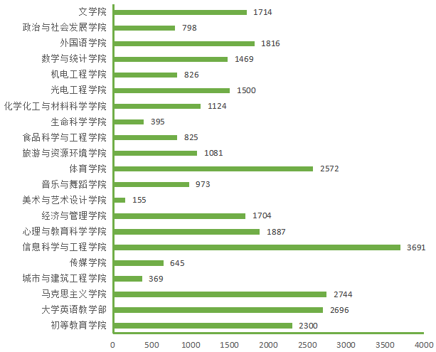 图5. 各院(部)4月27日线上授课学生数(人次)分布图