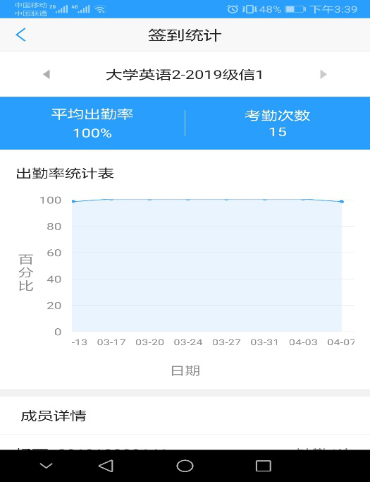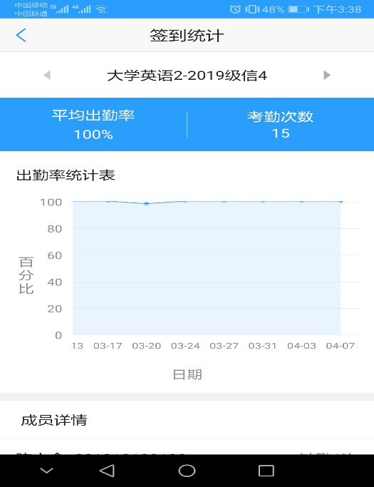 第一,在每堂课上课前十分钟,通过U校园考勤,到目前为止,除个别请假和集训的学生外,线上课堂出勤率为100%。