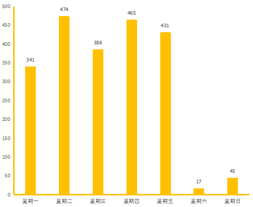 图2.4月6日-4月12日期间课程数(门次)分布图