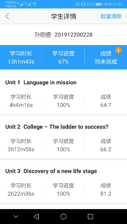 首先,指导学生加入“U校园”班级群,并建立“QQ线上教学群”。根据教学安排和教学内容,让学生通过U校园进行课前预习,并能通过U校园教师端实时监测学生的学习进度和学习时长,对掉队的学生实时督促;与此同时,在QQ群文件中上传相应的预习和课本文档,供学生下载或打印。