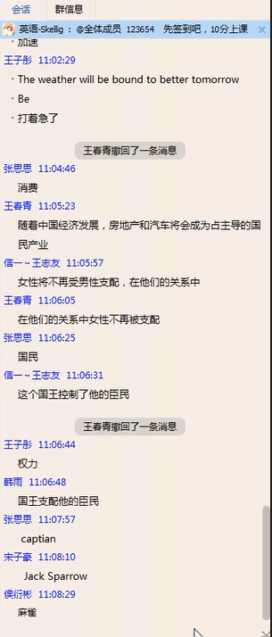 其二,通过U校园和QQ群作业发布课后作业,包含听力、阅读、写作、语法、词汇等内容,并及时进行标注与批改,出现的问题会在下次上课时进行统一讲解。