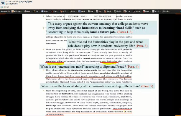 大学英语教学部张芸菲老师积极响应疫情期间 “停课不停学、停课不停教”的号召,认真开展线上教学,确保班级学生线上学习学有所获、学有所成。张芸菲老师本学期教授2019级信1和信4班的大学英语2课程,线上课程以大学英语教材新视野读写课本所配套的应用软件“U校园”为依托,并根据学生的学习习惯和学习特点,采用“QQ群直播屏幕分享”的方式进行在线授课,并辅佐以“EV录屏”方式方便学生课后复习。