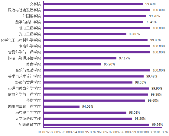 图6. 各院(部)3月31日线上学生上课率分布图