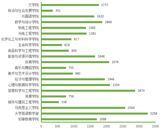 图5. 各院(部)3月31日线上授课学生数(人次)分布图