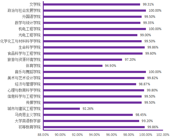 图6. 各院(部)3月26日线上学生上课率分布图