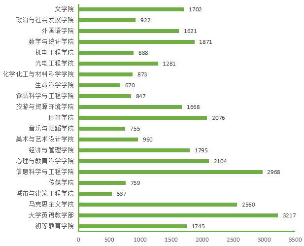 图5. 各院(部)3月24日线上授课学生数(人次)分布图
