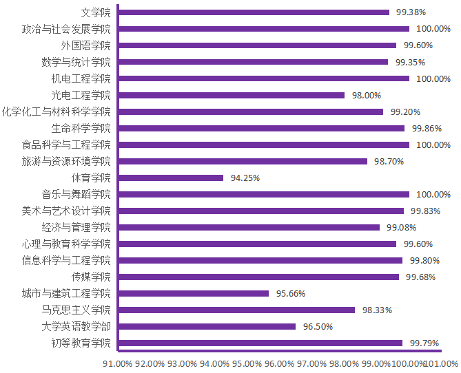 图6. 各院(部)3月19日线上学生上课率分布图
