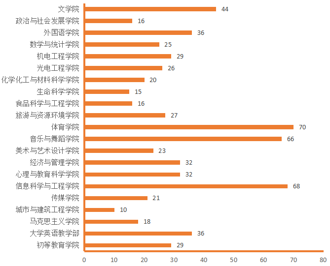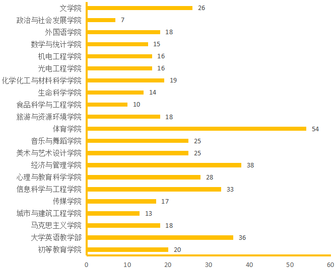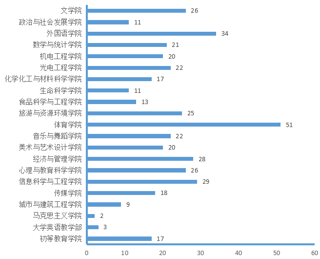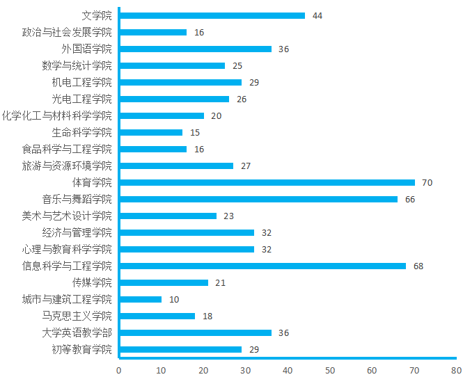 图4. 各院(部)3月19日线上授课教师数(人次)分布图