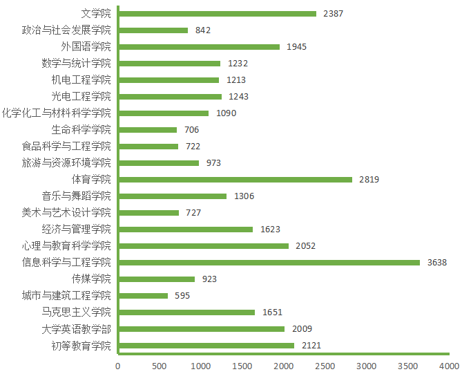 图5. 各院(部)3月19日线上授课学生数(人次)分布图