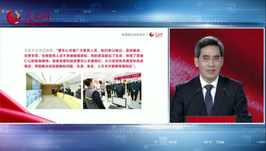 秦宣教授以“疫情大考告诉我们什么”为主题,向我们介绍了中国特色社会主义制度的优越性,在快速、及时、科学、高效的大动员、大集合、大作战中得以充分的展现。他强调面对未来,必须具有风险意识,必须通过改革完善国家体制和治理体系提高风险化解能力。