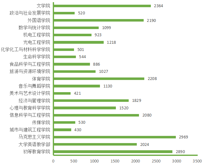 图5. 各院(部)3月13日线上授课学生数(人次)分布图
