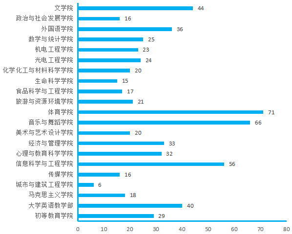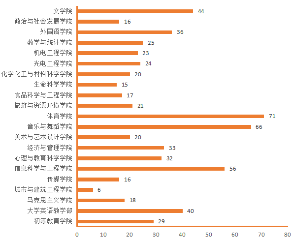 图4. 各院(部)3月12日线上授课教师数(人次)分布图