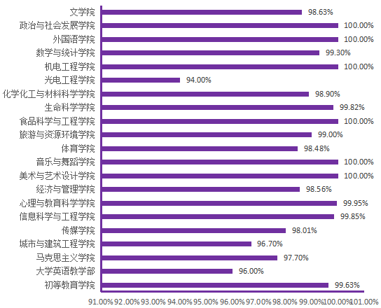图6. 各院(部)3月4日线上学生上课率分布图
