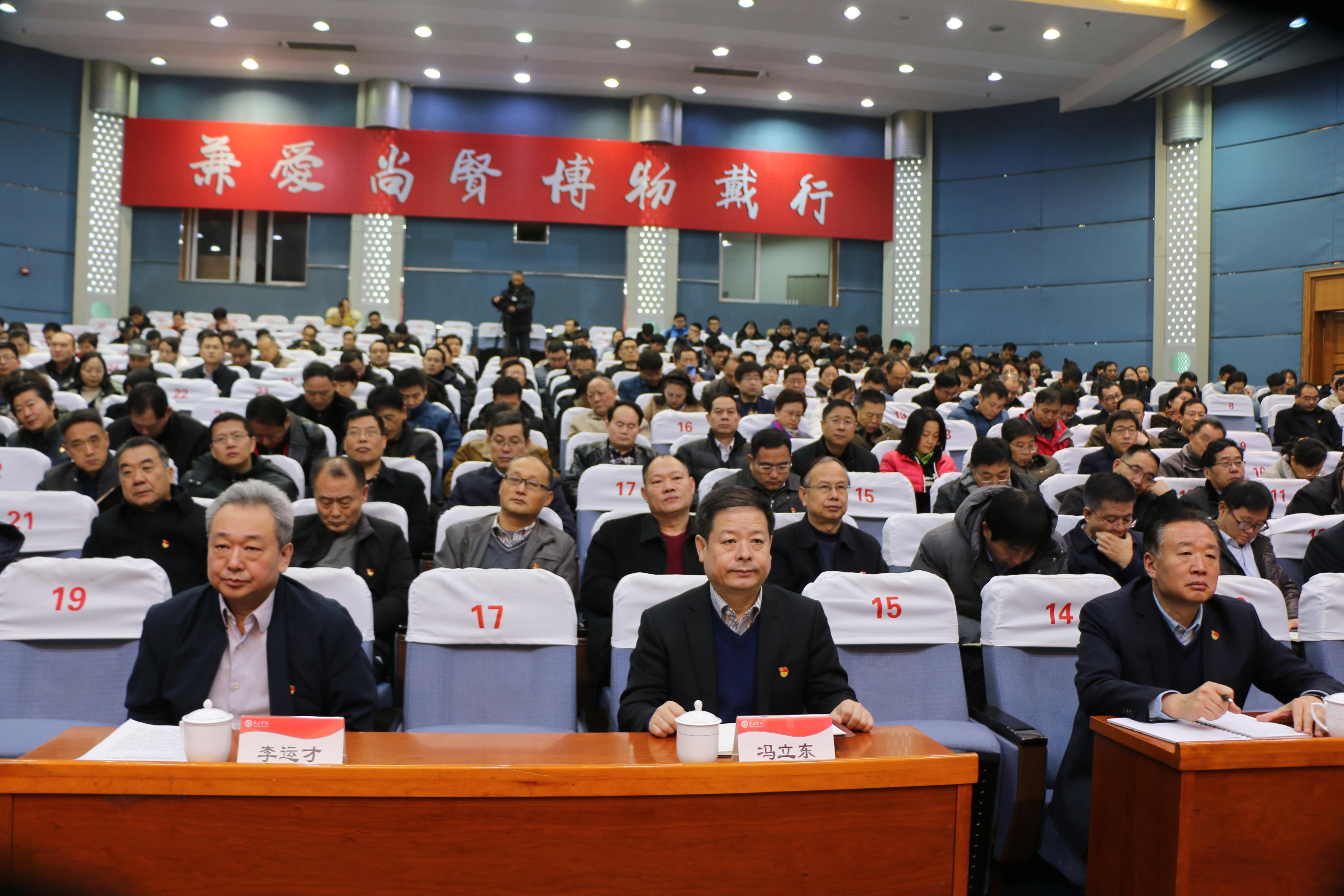 全校处科级党员干部、全体党支部书记、一线师生党员代表参加了大会。