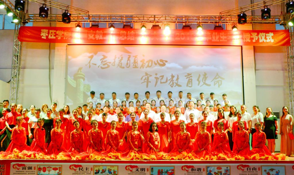 总结大会后,进行了援疆支教毕业生学位授予仪式。教务处副处长伊文涛宣读学校授予2019届本科毕业生学士学位的决定,曹胜强为支教团中获得学位的本科毕业生授予学位,为支教团中的专科毕业生颁发毕业证书。