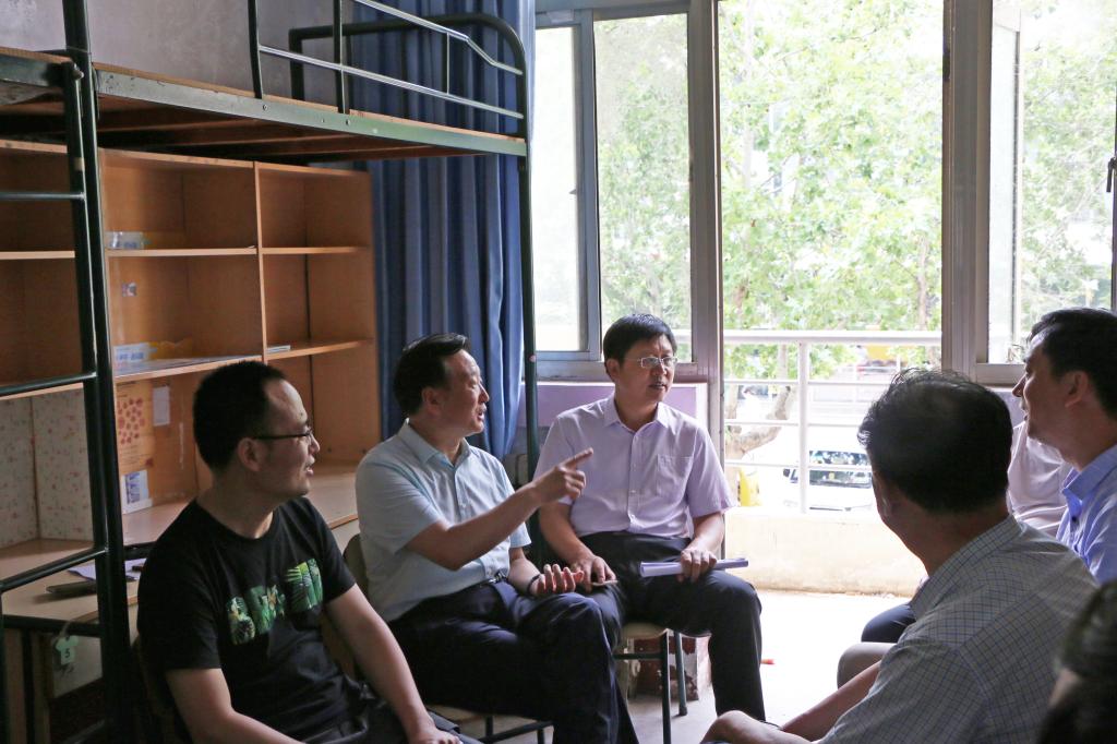 6月29日上午,校长李东、副校长李目海在办公室、学生工作处、后勤服务处、保卫处、国有资产管理处、招标办公室、校园建设与管理处等部门负责人的陪同下,对毕业生离校后的校园安全、管理与维护等工作进行检查督导。